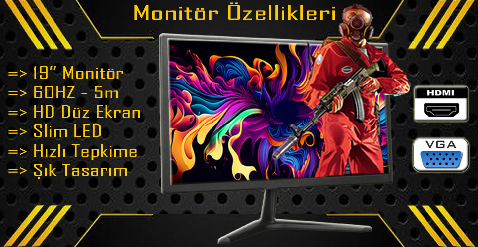 Neon I5 750 Turbo:3.20ghz 8gb Ram 128gb Ssd 250gb Hdd R7 240 4gb E.kartı 19 Monitör Gaming Set